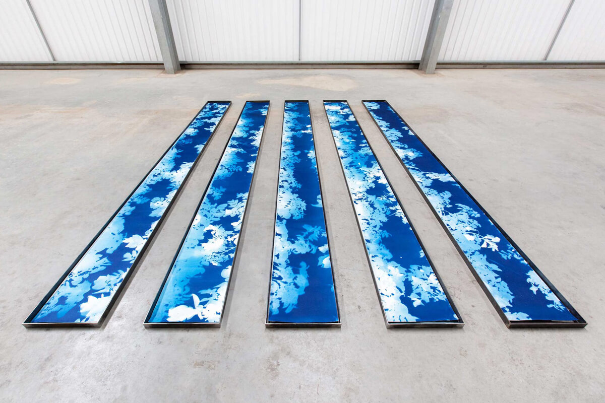Waterfall I, 2017; Blue Tree, 2017; Dissipate I, 2017; Forest V, 2017
