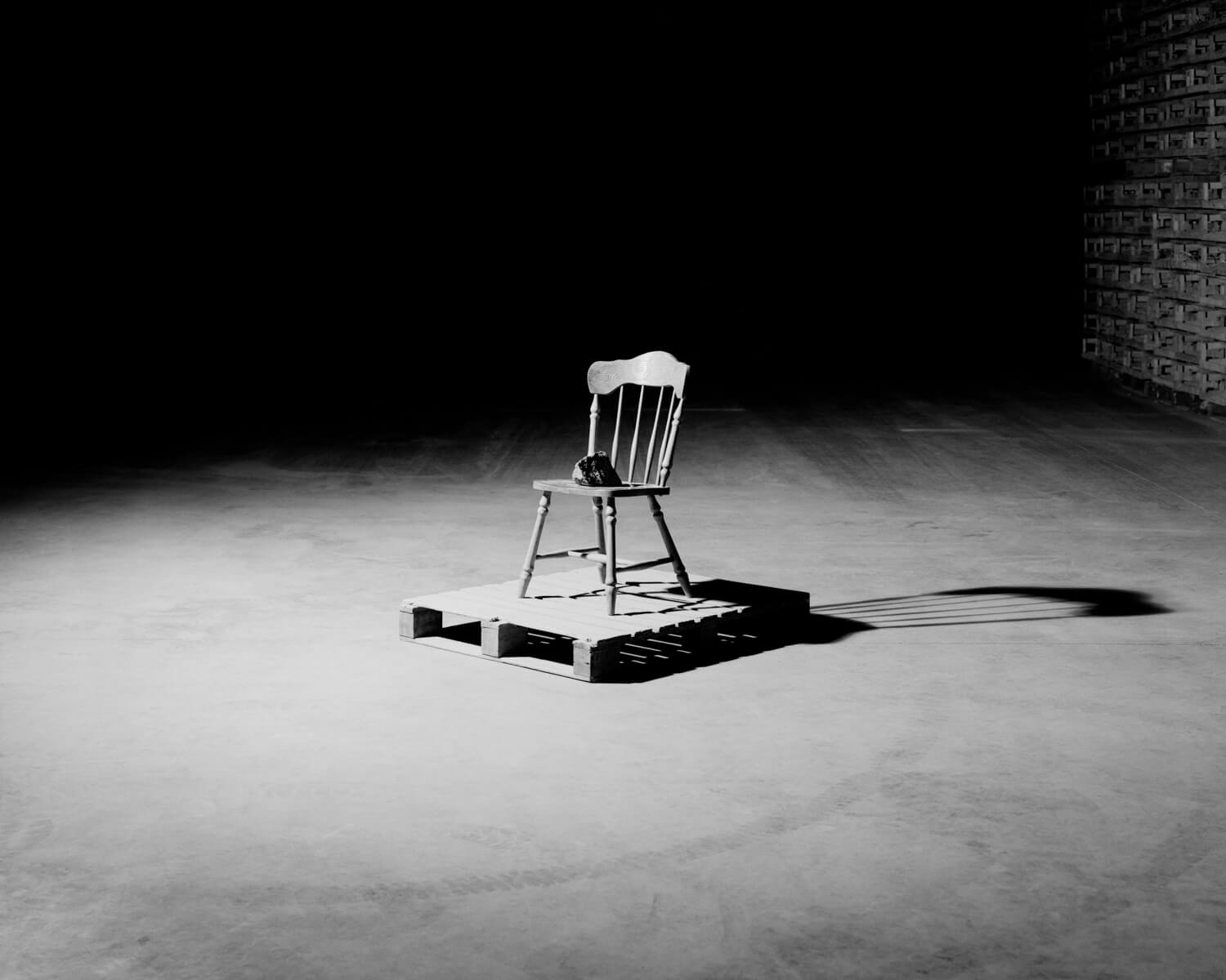 In this work, the artist’s ad hoc farm-studio performs, becoming a stage or a theatre for the conjuring of images. This ‘black box’ hints at the origins of photography and the camera as architecture; one seemingly infinite, with a void-like substance and hard to define scale. Here, the night transforms into a character, encapsulating desire, the unknown and the artist’s pursuit of knowledge.